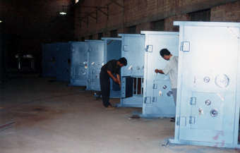 武邑縣龍牌柜業(yè)有限公司原名“武邑縣金屬櫥柜廠”(黑龍港牌),由于增加注冊資金改名為“河北省龍牌保險柜總廠”,于2003年企業(yè)升級為"武邑縣龍牌柜業(yè)有限公司,我廠已有三十年的生產歷史,是專業(yè)生產不銹鋼金庫門、移動金庫的廠家。廠區占地面積42154平方米,建筑面積16861平方面,設備齊全,年產量可達3萬臺(套)。